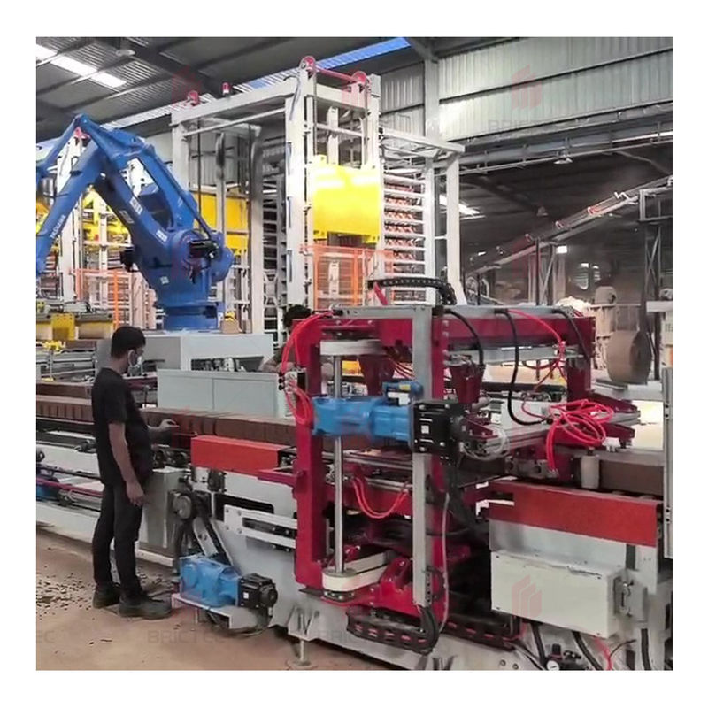 A máquina de corte de arame chanfrada é uma unidade híbrida que integra um suporte de faca chanfrado em um cortador de arame convencional, executando o corte de comprimento e o chanfro de 45 °/30 ° em um golpe para tijolos verdes úmidos de argila, xisto ou gangue de carvão.